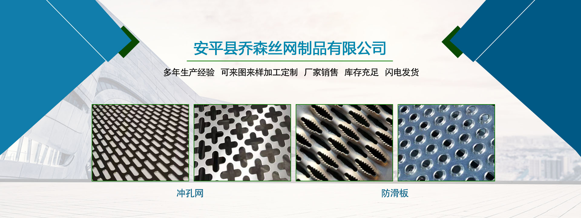 安平縣喬森絲網(wǎng)制品有限公司主營產(chǎn)品:篩網(wǎng)、金屬裝飾網(wǎng)、沖孔網(wǎng)板、防滑板和軋花網(wǎng)。常年現(xiàn)貨供應45號黑鋼絲編織篩網(wǎng)、熱鍍鋅鋼絲篩網(wǎng)、304不銹鋼篩網(wǎng)和冷鍍鋅鐵絲網(wǎng),加工定做耐磨65號錳鋼絲篩網(wǎng)、菱形孔防堵篩網(wǎng)、養(yǎng)殖用長方孔鐵絲網(wǎng)、金屬裝飾網(wǎng)、盤條 礦篩網(wǎng)等各種鋼絲篩網(wǎng)和建筑用鐵絲網(wǎng)片,歡迎新老客戶前來咨詢洽談合作。